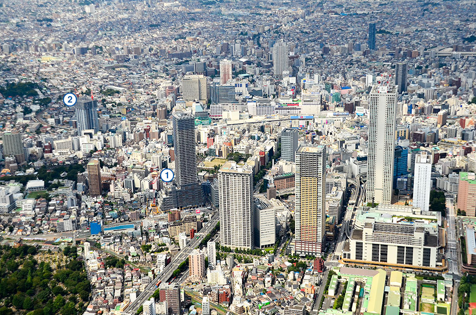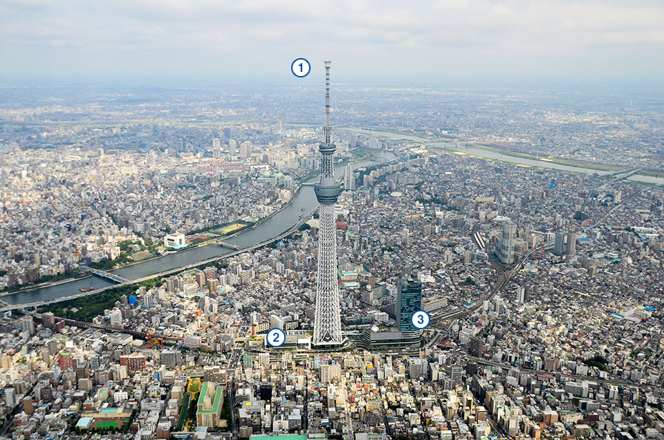 ①東京スカイツリー ② 東京スカイツリータウン ③ 東京スカイツリーイーストタワー