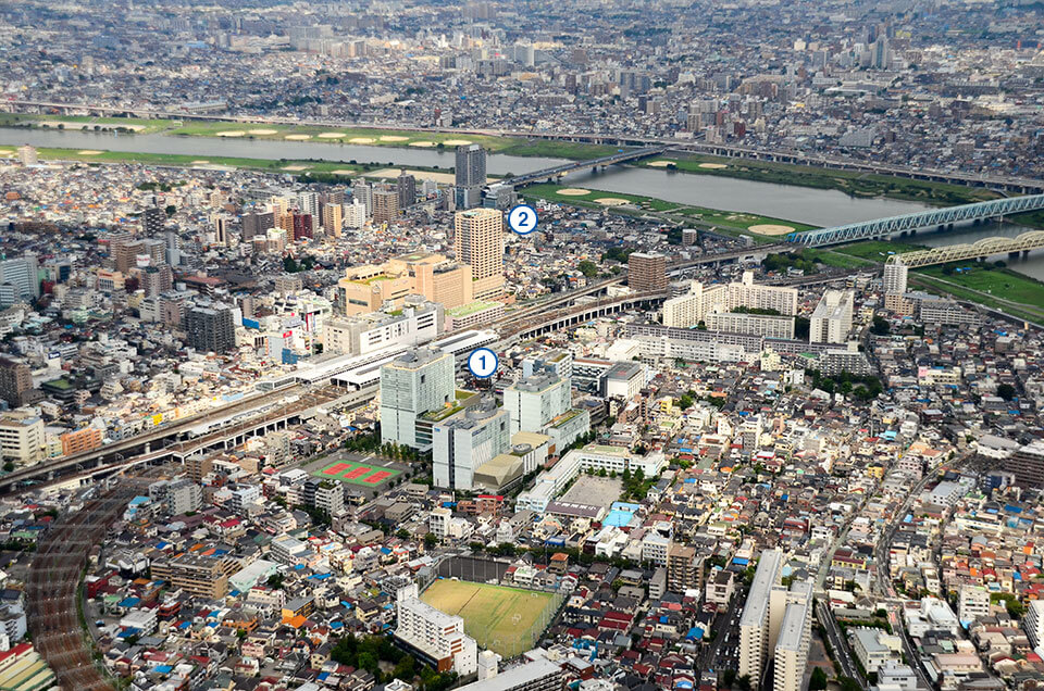 ①東京電気大学東京千住キャンパス ② 北千住マルイ