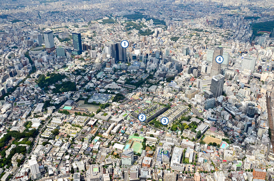 ①住友不動産渋谷ガーデンタワー ② ラ・トゥール代官山 ③ センチュリーフォレスト ④ 東急セルリアンタワー