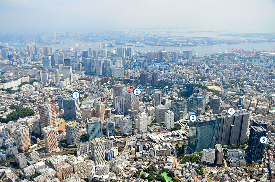 ①大崎フォレストビル ② 北品川五丁目第一地区 D棟 B棟 A棟 ③ シンクパークタワー ④ NBF大崎タワー