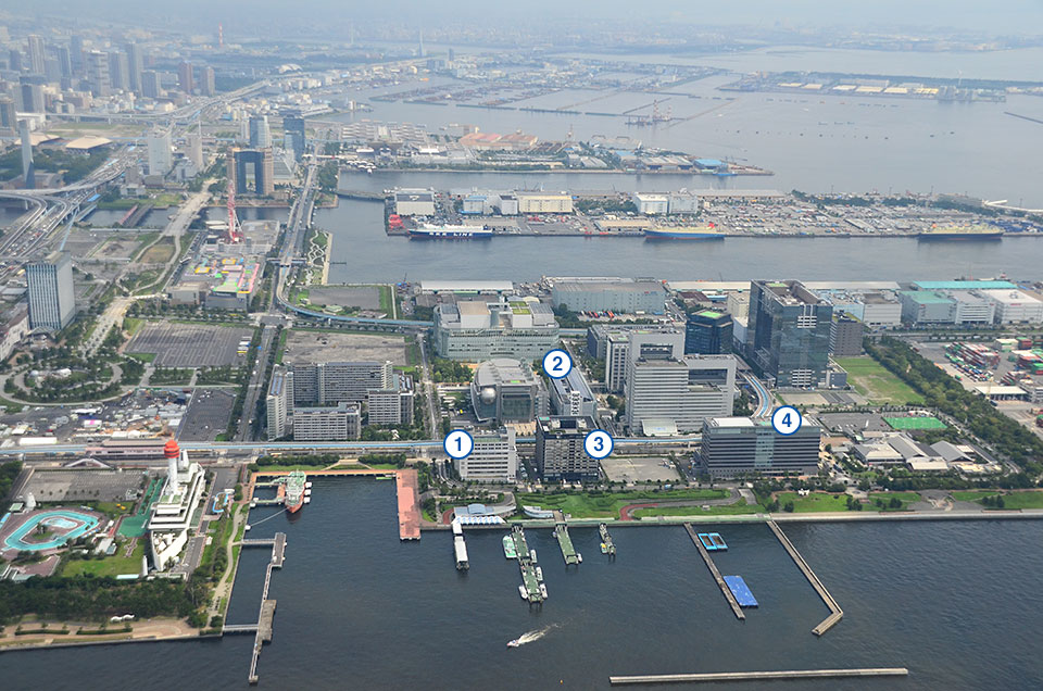 ①湾岸警察署 ② 国際研究交流大学村 ③ the SOHO ④ 東京港湾合同庁舎