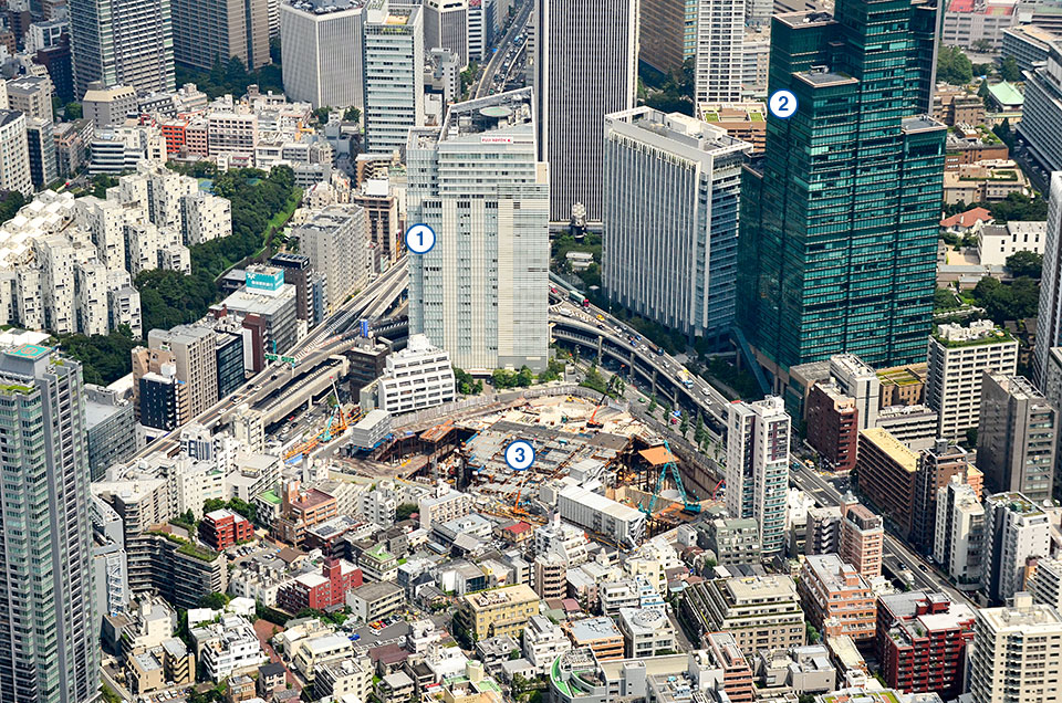 ①六本木ティーキューブ ② 泉ガーデンタワー ③ 六本木三丁目市街地再開発