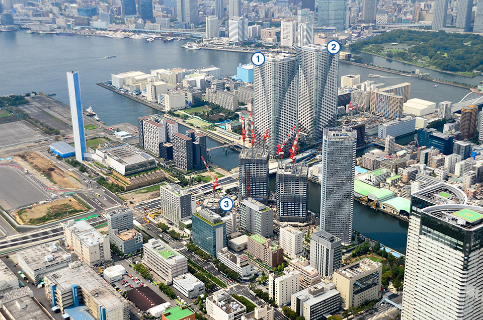 ①シータワー ② ミッドタワー ③ 晴海三丁目