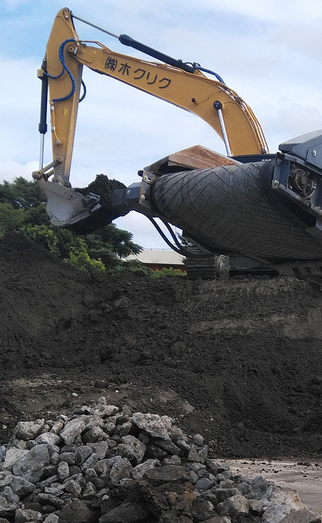 建設現場で、大量に発生する土砂。私たちは、陸上や海上を通じて運搬し、必要な現場や地域へ届けています。