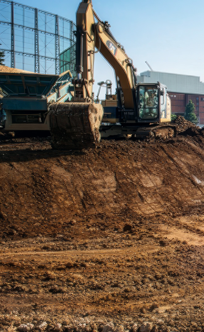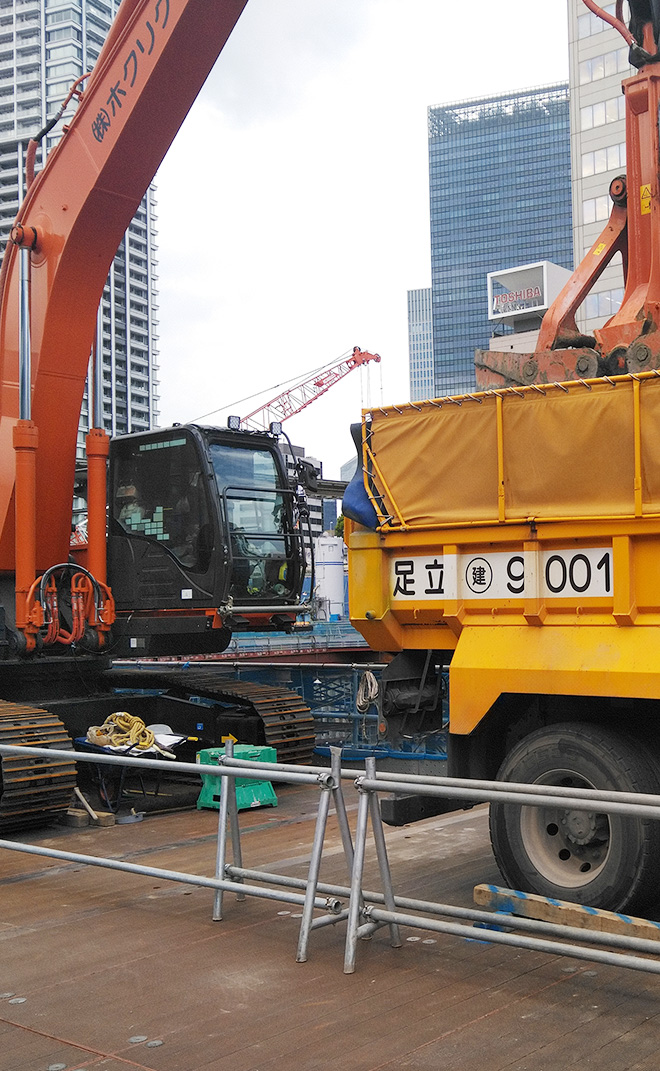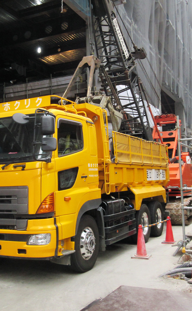建設現場で、大量に発生する土砂。私たちは、陸上や海上を通じて運搬し、必要な現場や地域へ届けています。